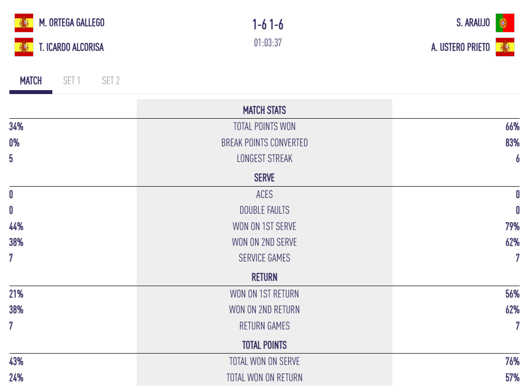 Araujo en Ustero betraden de baan meteen met veel intensiteit en drukten vanaf de eerste ballen hun stempel op het spel.